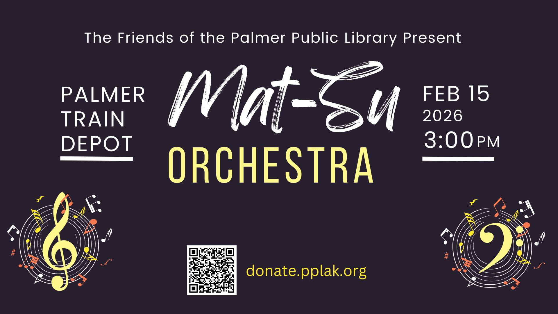 The Mat-Su Orchestra fundraising performance for Palmer Library. Free admission. Donations accepted.